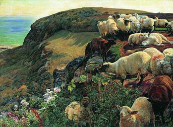 | Keywords: William Holman Hunt 003.jpg Artwork de Unsere englische Küste Verirrte Schafe oil canvas cm 43 58 5 London Institution Tate Britain Genre works The Yorck Project 10 000 Meisterwerke der Malerei DVD-ROM 2002 ISBN 3936122202 Distributed by DIRECTMEDIA Publishing GmbH 1852 Creator William Holman Hunt http //mail wikipedia org/pipermail/wikide-l/2005-April/012195 html Other versions PD-old-100 PD-Art-YorckProject Pre-Raphaelite paintings in Tate Britain Paintings of sheep 1852 paintings Coasts in art Paintings by William Holman Hunt Our English Coasts or Strayed Sheep Oil on canvas paintings in the United Kingdom |