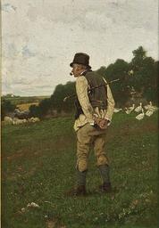Keywords: William Magrath - The shepherd surveying his flock (1880).jpg 1880 oil canvas cm 33 23 accession number object history credit line exhibition history http //www arcadja com/auctions/de/private/magrath_william/kunstwerken/39857/0/ Adams Dublin 6 Dec 2010 lot 32 via ARCADJA auction results PD-old-auto-1923 1918 William Magrath Paintings of shepherds Pastoral |
