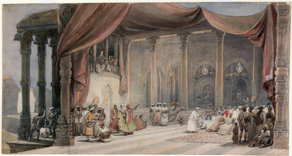 | Keywords: William Prinsep, Europeans being entertained by dancers and musicians in a splendid Indian house in Calcutta during Durga puja (1830s–1840s).jpg A depiction of celebrations inside a house during Durga Puja in Kolkata Calcutta West Bengal India where Europeans are being entertained The artist Prinsep was a merchant with the Calcutta firm of Palmer Company between 1830s 1840s watercolor cm 22 9 43 5 Institution British Library http //www bl uk/onlinegallery/onlineex/apac/other/019wdz000004035u00000000 html object history credit line accession number WD4035 http //ogimages bl uk/images/019/019WDZ000004035U00000000 5BSVC2 5D jpg other versions PD-Art-100 1830s watercolor paintings 1840s watercolor paintings 1830s paintings from India 1840s paintings from India Durga Puja in Kolkata British Library India Office western drawings collection Watercolor paintings of people of India Durga Puja in art Kolkata in the 1830s |