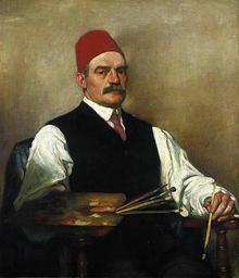 | Keywords: William Strang (1859-1921).jpg LangSwitch William Strang was a talented painter as well as a masterly and prolific printmaker His etchings include striking portraits of sitters such as Thomas Hardy Rudyard Kipling and Robert Louis Stevenson Towards the end of his life Strang etched less and painted more Inspired by Dutch artist Rembrandt he produced a series of self-portraits in a variety of guises This particular one shows the artist wearing a `fez a red felt hat that originates from Morocco but was worn throughout the Ottoman Empire during the nineteenth century Unfortunately we do not know why he chose to paint himself in this particular way LangSwitch William Strang Self-portrait 1859-1921 William Strang'ın kendi portresi 1859-1921 William Strang auto-portrait 1859-1921 William Strang Selbstporträt 1859-1921 William Strang Autorretrato 1859-1921 William Strang Auto-retrato 1859-1921 William Strang Self-portrait 1859-1921 William Strang Zelfportret 1859-1921 Уильям Ст энг Автопо т ет 1859-1921 1859-1921 سترنغ وليام الصورة الذاتية Oil on canvas size cm 107 92 1 Institution National Gallery of Scotland exhibition history ~ 1905 accession number PG 2198 www nationalgalleries org http //www nationalgalleries org Home http //www nationalgalleries org/collection/artists-a-z/S/5228/artist_name/William 20Strang/record_id/5160 Image Creator William Strang PD-old-100 Uploaded with UploadWizard William Strang Paintings in the National Gallery of Scotland |