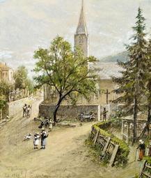 | Keywords: William Unger St-Nikolaus-Kirche Gastein.jpg St -Nikolaus-Kirche in Bad Gastein Gouache Paper 46 x 39 cm W Unger / Juli 1929 St Nikolaus Kirche - Gastein signature/date/title http //www imkinsky com/ im Kinsky 1929-07 William Unger 1837-1932 PD-old Images from im Kinsky Kunstauktionen Paintings of Bad Gastein 1929 paintings Gouache paintings Churches in Salzburg state in art William Unger Nikolauskirche Bad Gastein | ||||