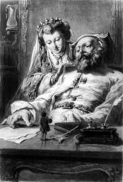 | Keywords: Willmann, Colin, & Outhwaite, Gulliver with the Brobdingnag king and queen, cph.3b18902.jpg en Gulliver addressing the Brobdingnagian king and queen from an 1850s French edition of Gulliver's Travels Caption Je répondis avec justesse a toutes les questions du roi I accurately answered all the king's questions LOC-image cph 3b18902 Engraving by Willmann Colin Outhwaite after Paul Gavarni decade 1850 Voyages de Gulliver 1850s PD-old | ||||