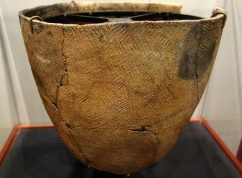 Keywords: Wilmington cord marked pot, Wilmington Period, AD 350-800 - Fernbank Museum of Natural History - DSC00169.JPG en Exhibit in the Fernbank Museum of Natural History Atlanta Georgia USA Photography was permitted in the museum without restriction 2012-03-17 01 12 01 own Daderot cc-zero St Catherines Island pottery in the Fernbank Museum of Natural History Uploaded with UploadWizard |