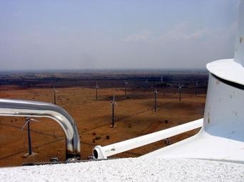 | Keywords: Windfarm Kayathar India Tamil Nadu 2005-10-8.JPG Das Bild wurde vom Dach einer Windkraftanlage aufgenommen und zeigt einen Ausschnitt des Windparks Kayathar im indischen Bundesstaat Tamil Nadu 2005-10-08 own assumed Werkbank Wind farms in Tamil Nadu Buildings in Thoothukudi district |
