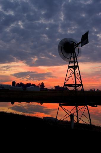 Keywords: windmill silhouette sunset sky landscape clouds agriculture rural energy power farm
