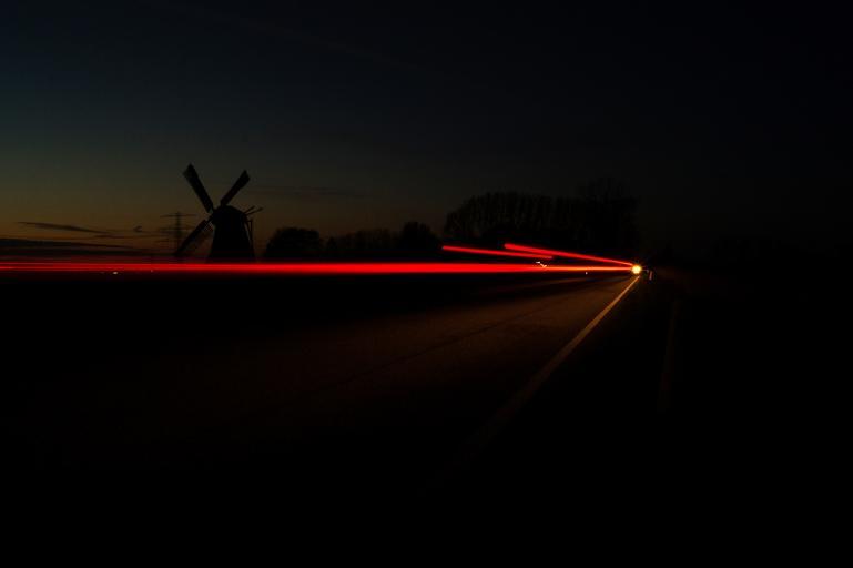 Keywords: windmill traffic car lights lights night dark long exposure