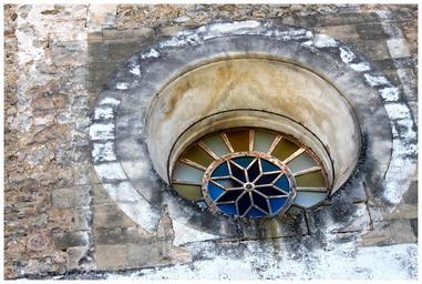 Keywords: window church church window architecture stained glass old dirty glass window glass rosette color pattern glass window light dark art stained glass window spain mallorca