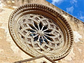 Keywords: window circular stained glass church stone architectural design swirls