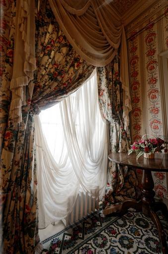 Keywords: window drapes old light room textile decor curtain interior fabric red luxury