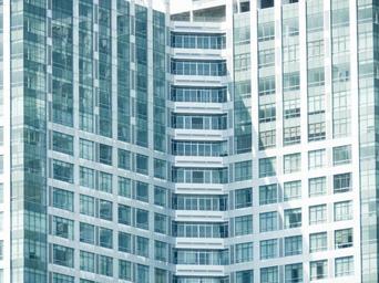 Keywords: window high tower building blue green abstract geometric tile background pale color