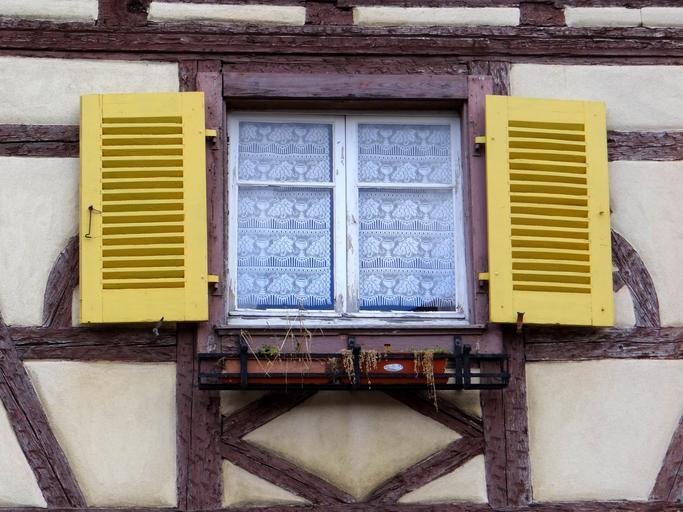 Keywords: window shutters yellow brown old town historically home truss fachwerkhaus alsace colmar picturesque individual france