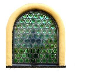 Keywords: window slug glass bullseye green leaded glass historicized stack washer umbilical plate
