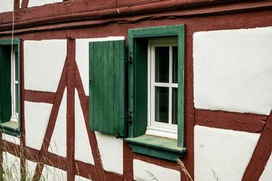 Keywords: window truss shutter fachwerkhaus home building hauswand wall architecture wood bar facade green brown