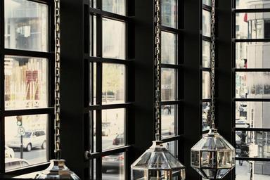 Keywords: windows lamps montreal quebec interior contemporary design chandeliers lights chains links glass