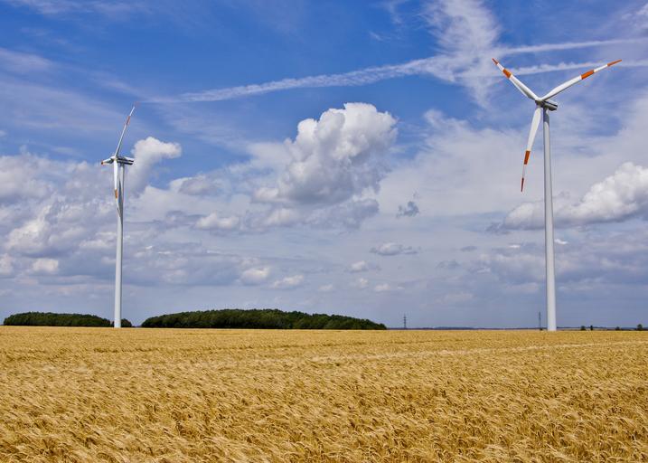 Keywords: windräder landscape fields sky wind energy clouds brown blue