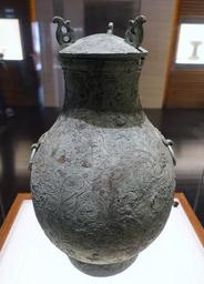 | Keywords: Wine kettle with cloud and water pattern, China, unearthed at Xiaotianxi, Fuling district, Chongqing City, Warring States period, 475-221 BC, bronze - Sichuan Provincial Museum - Chengdu, China - DSC04234.jpg en Exhibit in the Sichuan Provincial Museum 四 博物院 also known as the Sichuan Museum 251 Huanhua S Road Chengdu Sichuan China Photography was permitted in the museum without restriction This work is old enough so that it is in the public domain 2015-09-24 01 53 21 own Daderot other versions PD-old-100 cc-zero Bronzes of the Warring States period in the Sichuan Provincial Museum |