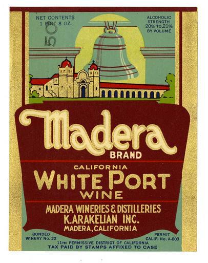 | Keywords: mission text sign signboard Repository: California Historical Society Collection: California wine label and ephemera collection Date: circa 1930s Call Number: Kemble Spec Col 07 Digital Object ID: Kemble Spec Col 07_017.jpg Preferred Citation: Wine label, K. Arakelian Inc., Madera Brand California White Port Wine, California wine label and ephemera collection, Kemble Spec Col 07, courtesy, California Historical Society, Kemble Spec Col 07_017.jpg. Repository: California Historical Society Collection: California wine label and ephemera collection Date: circa 1930s Call Number: Kemble Spec Col 07 Digital Object ID: Kemble Spec Col 07_017.jpg Preferred Citation: Wine label, K. Arakelian Inc., Madera Brand California White Port Wine, California wine label and ephemera collection, Kemble Spec Col 07, courtesy, California Historical Society, Kemble Spec Col 07_017.jpg. |