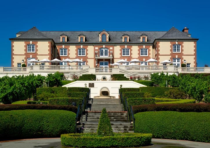 Keywords: winery wine-making building architecture gardens front entrance attractions tourism hedges bushes courtyard beautiful hdr landscape scenic california