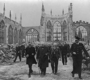 Keywords: Winston Churchill walks through the ruins of Coventry Cathedral.jpg Winston Churchill walking through the ruined nave of Coventry Cathedral England Library of Congress 1942 Library of Congress http //www loc gov/exhibits/churchill/images/wc0106-3a18421r jpg Library of Congress PD-USGov DEFAULTSORT Coventry Michael Anglican priests from England Black and white photographs of England Black and white photographs of religious buildings Churches in England photographed in 1941 Collections of the Imperial War Museum Coventry Blitz Coventry Cathedral Ruins Gothic naves in England Historic photographs of Coventry Winston Churchill in 1941 19410928 |