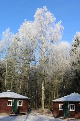 Keywords: winter forest log houses winter magic snow magic winter mood winter dream winter forest wintry trees nature blue sky class trip youth hostel school camp holiday resort children families holidays holiday mecklenburg waldheim