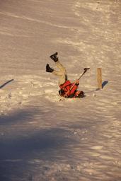 Keywords: winter hike wanderer hike snow wintry fall accident misfortune cold icy person human man run go trace traces snow lane winter white footprint