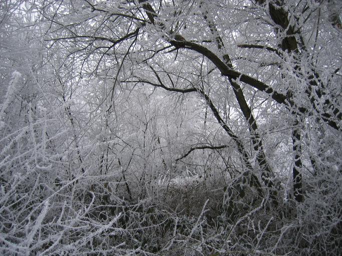 Keywords: winter hoarfrost cold frost tree leaves branches nature frozen snow ice plant forest fog atmosphere winter time