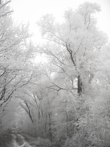 Keywords: winter hoarfrost cold frost tree leaves branches nature frozen snow ice plant forest fog atmosphere winter time