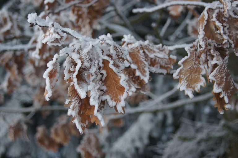 Keywords: winter hoarfrost snow oak leaves tree