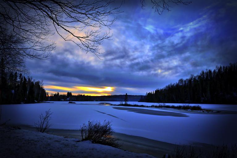 Keywords: winter landscape nature winter end of the day ice snow cold frozen lake colors ice formation trees québec canada
