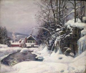 | Keywords: 'Winter, Mesna, 1892' by Frederik Collett, Bergen Kunstmuseum.JPG en Winter Mesna 1892 by Frederik Collett 1892 oil on canvas Bergen Kunstmuseum own Creator Frederik Collett 1892 DEFAULTSORT Collett Frederik Frederik Collett Paintings from Norway in the Bergen Kunstmuseum Mesna Paintings of snow-covered houses Paintings of rivers with snow PD-old-100 | ||||