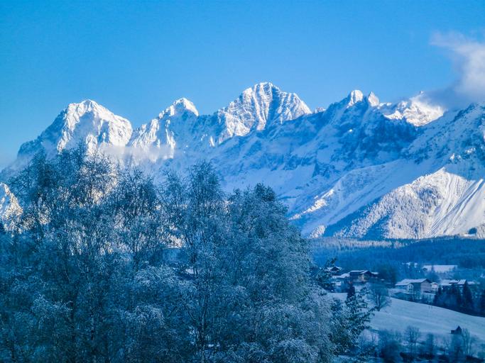 Keywords: winter mountains wintry alpine landscape austria alpenblick snow dachstein nature