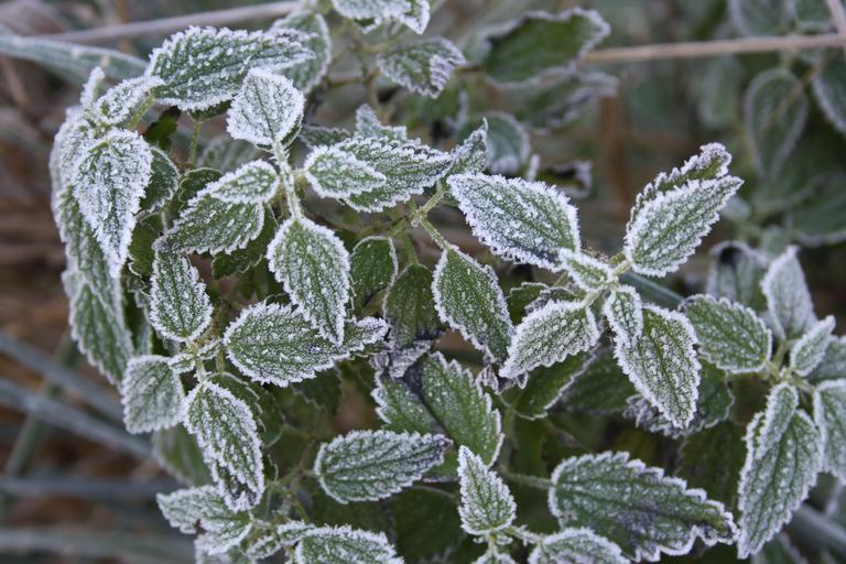 Keywords: winter plant flower ice green white freeze cold frozen brennessel