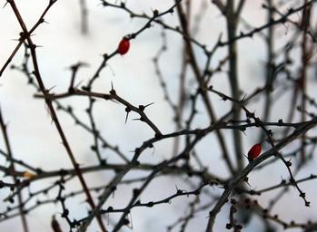 Keywords: winter prickles snow twigs horizontal white