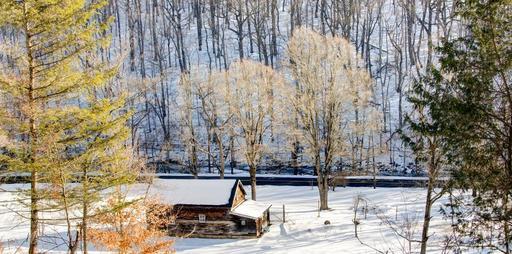 Keywords: winter snow cabin trees