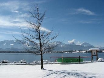 Keywords: winter snow clouds sky white cold all wintry landscape snowy tree allgäu lake forggensee alpine panorama mountains outlook foothills of the füssen