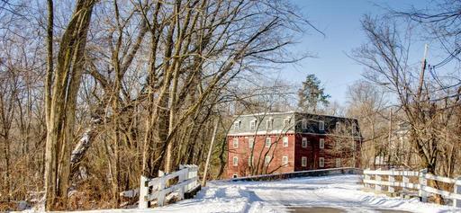 Keywords: winter snow millhouse fence blue sky