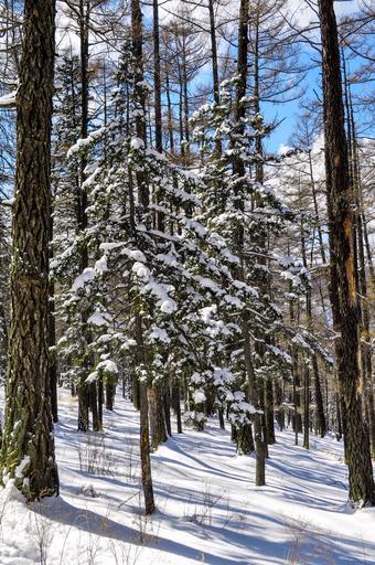 Keywords: winter snow mountain cold season nature mongolia april shadow clear spruce trees tree wood needle