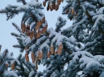 Keywords: winter snow trees forest tap pine cones fir brown wood nature seeds