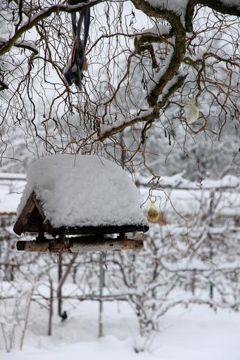 Keywords: winter snow white bird feeder aviary bird cold feed
