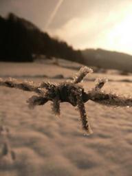 Keywords: winter sun snow nature frost sky hoarfrost trees back light blue cold evening sun mood sunset frozen wire mesh eiskristalle field