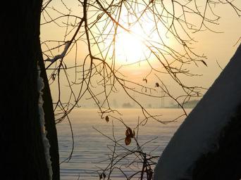 Keywords: winter sunset tree branches snow winter mood sunlight wintry
