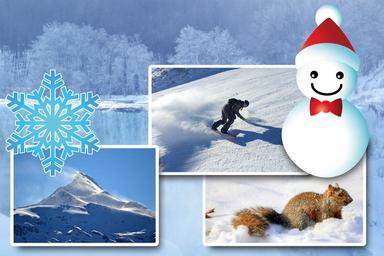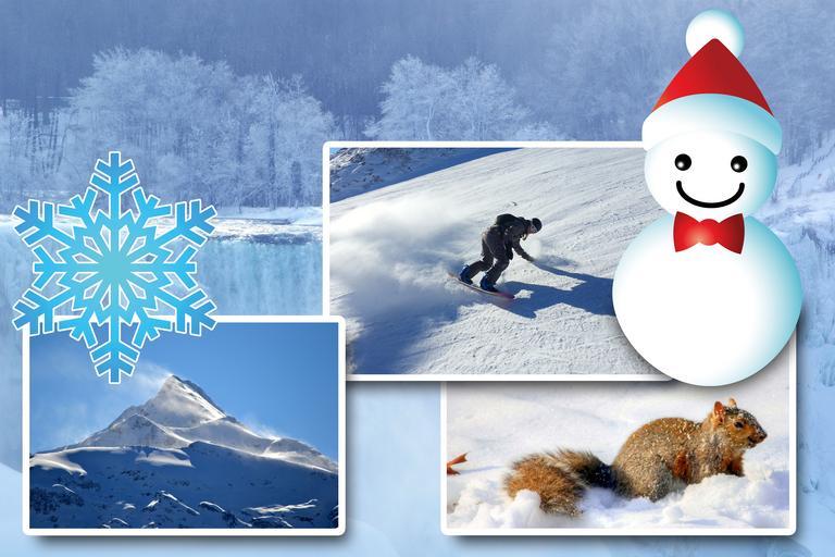 Keywords: winter time of year decoration snowflake die cut pressure finishing christmas christmas time winter time artificial romantic loving laugh map greeting card christmas card christmas greeting winter sports mountain snow ice frozen trees hoarfrost squirrel snow man santa hat bobble hat bobcap red fly collage