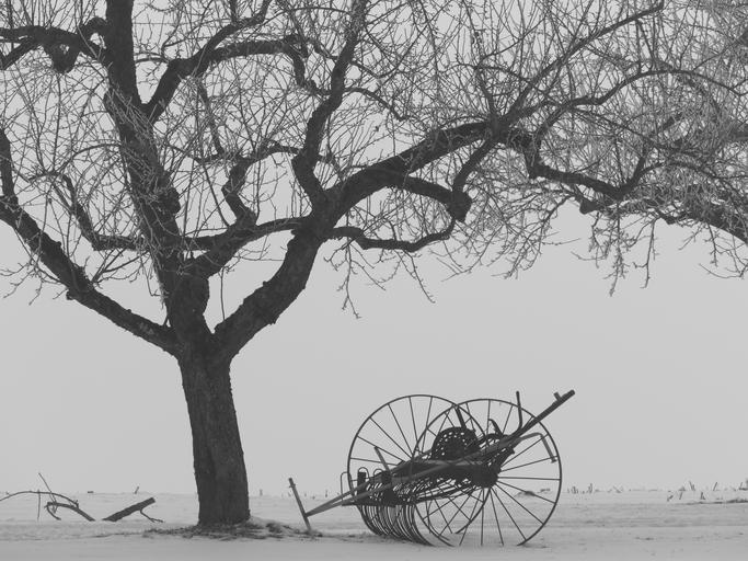 Keywords: winter tree kahl snow still life hay tedders agriculture cold wintry snow landscape black and white