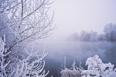 Keywords: winter water trees snow vegetation frost fog background