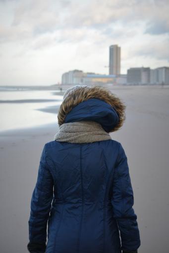Keywords: winter winter clothing walk on the beach woman jacket people hood beach oostende
