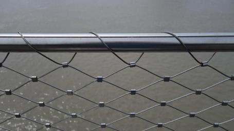 Keywords: wire tube railing bridge railing regularly pattern lines geometry metal shiny technology