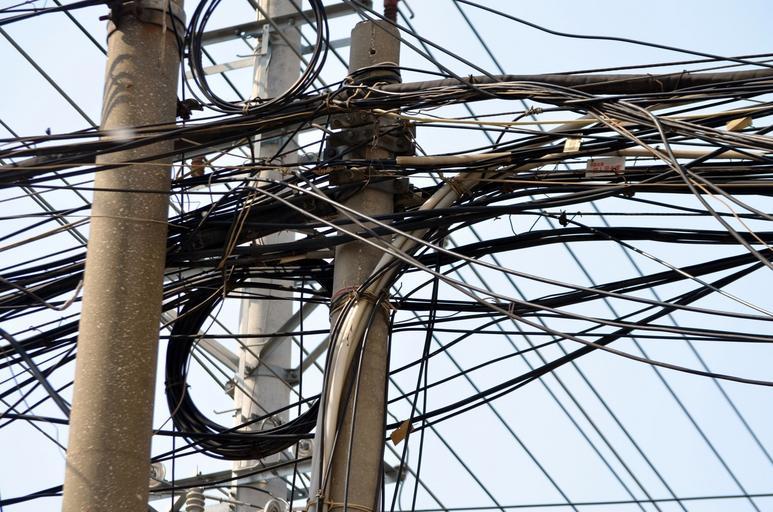 Keywords: wire wiring china electric overhead business utilities power powerlines crowded congested confusing objects