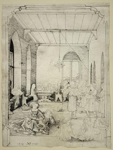 Keywords: Wirtshausszene erlangen.jpg Wirtshausszene http //bvbm1 bib-bvb de/webclient/DeliveryManager pid 3081154 custom_att_2 simple_viewer ~ 1500 Meister des Hallenser Ulrichaltars PD-Art Tavern interiors in art