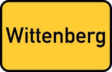 Keywords: wittenberg saxony-anhalt lutherstadt luther town sign city limits sign entry sign gateway sign traffic road sign street sign directory yellow germany direction unesco world heritage site