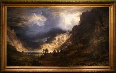 | Keywords: WLA brooklynmuseum Albert Bierstadt A Storm in the Rocky Mountains.jpg Albert Bierstadt American 1830-1902 A Storm in the Rocky Mountains Mt Rosalie 1866 Oil on canvas 83 x 142 1/4in 210 8 x 361 3cm Brooklyn Museum Dick S Ramsay Fund Healy Purchase Fund B Frank L Babbott Fund A Augustus Healy Fund Ella C Woodward Memorial Fund Carll H de Silver Fund Charles Stewart Smith Memorial Fund Caroline A L Pratt Fund Frederick Loeser Fund Augustus Graham School of Design Fund Museum Collection Fund Special Subscription and the John B Woodward Memorial Fund; Purchased with funds given by Daniel M Kelly and Charles Simon; Bequest of Mrs William T Brewster Gift of Mrs W Woodward Phelps in memory of her mother and father Ella M and John C Southwick Gift of Seymour Barnard Bequest of Laura L Barnes Gift of J A H Bell and Bequest of Mark Finley by exchange 76 79 Photographed 2009 02 by Wikipedia Loves Art participant http //www flickr com/groups/wikipedia_loves_art/pool/tags/Opal_Art_Seekers_4/ Opal_Art_Seekers_4 Uploaded from the http //www flickr com/groups/wikipedia_loves_art/pool/ Wikipedia Loves Art photo pool on Flickr WLA brooklynmuseum 76 79 Opal_Art_Seekers_4 griannan 9428063 N04 3305379862 76 79 1866 Creator Albert Bierstadt Oil on canvas cm 210 8 361 3 Institution Brooklyn Museum credit line painting PD-old-100 photograph cc-by-2 5 Kaldari 2009-09 DEFAULTSORT Albert Bierstadt - Storm in the Rocky Mountains Mt Rosalie 06 A Storm in the Rocky Mountains Mt Rosalie Brooklyn Museum by Albert Bierstadt |